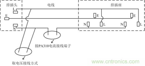 1.電源排插上是否存在LED指示燈,如果有,那么這個指示燈的電流就會被作為負載電流進行測量。排插接線如圖1所示,大多數排插都會有LED指示燈,通電后流經LED燈的電流一般為mA級,因此,對被測電流帶來誤差,尤其是測待機功耗影響更大。