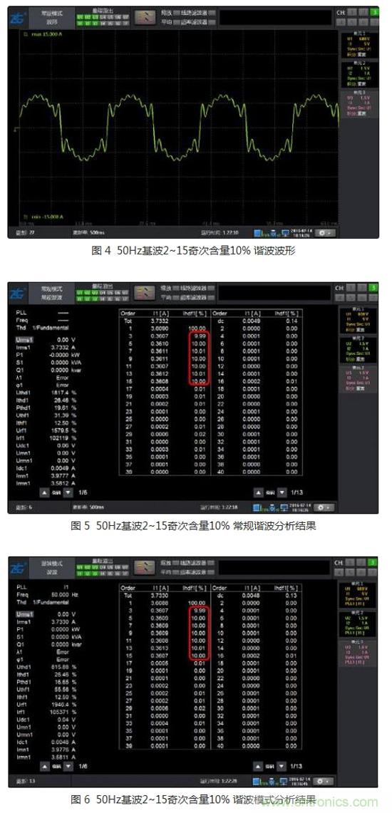 需要指出的是,雖然以上用例中常規諧波分析結果都正確且精度很高,但在諧波模式PLL正確時,諧波模式在高次諧波的穩定性和精度會比常規諧波高,因為常規諧波在高次諧波的頻率上有累積誤差,且頻譜兩端會受負頻率的影響。特別需要注意常規諧波一個致命缺點是頻率下限較高(PA5000功率分析儀的常規諧波支持基波的頻率下限是15Hz),而且需要保證更新周期內有足夠的采用點。