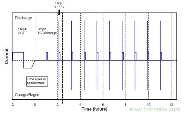 那么RPT測試需要包含哪些內容呢?首先容量衰減和內阻的增大是電池衰減的主要指標,其次RPT測試過程要盡量的簡潔,否則可能出現冗長的檢測過程造成了壽命影響因子的失真。一般情況下RPT測試由一次常溫靜態容量測試(SCT)和某個特定SOC點下的混合脈沖功率性能測試(HPPC)組成。 這樣即可快速的獲取電池容量和內阻這兩個關鍵參數。