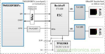 圖示1-大聯大友尚推出的基于TI高性能MCU的EtherCAT接口參考設計系統架構圖