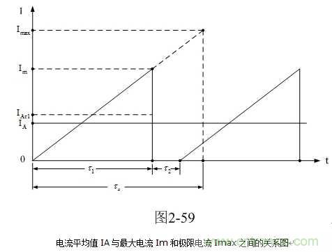 這里順便介紹一下電流平均值IA的求法,以及其與最大電流Im和極限電流Imax的關系。圖2-59是電流平均值IA與最大電流Im和極限電流Imax之間的關系圖。