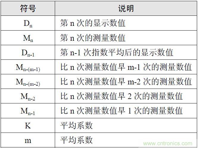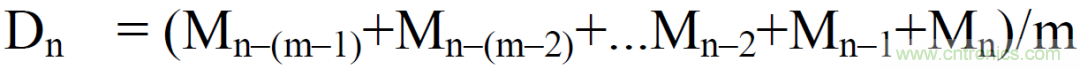 移動平均法,用戶可設(shè)定移動個數(shù)對電壓或電流有效值、有功功率的瞬時值(采樣數(shù)據(jù))進行移動平均,其原理是采集N個信號之后對這些數(shù)據(jù)求平均,其中移動個數(shù)N可以手動設(shè)置,移動個數(shù)設(shè)置值越大測量值越穩(wěn)定,同樣對輸入變化的響應(yīng)速度也就越慢,該平均方法多用于信號本身存在波動的情況,比如因負載波動導(dǎo)致信號本身波動,就建議用移動平均,移動平均公式如下: