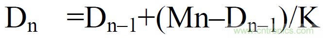 選擇指數(shù)平均法,用戶可設(shè)定衰減常數(shù)對電壓或電流有效值、有功功率的瞬時值(采樣數(shù)據(jù))進行指數(shù)平均,去除被測量的高頻成分。其中衰減常數(shù)可以手動設(shè)置,衰減常數(shù)設(shè)置值越大測量值越穩(wěn)定,對輸入變化的響應(yīng)速度也就越慢,也就是說測量延遲會相應(yīng)變長。該平均法常用于信號中存在高頻信號,通過設(shè)定衰減常數(shù)減小高頻信號對數(shù)據(jù)的干擾,公式如下: