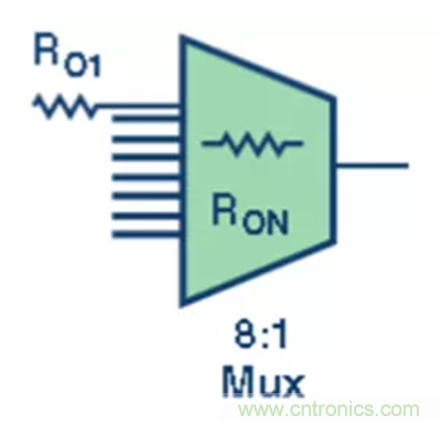 圖3. 此 8:1 多路復(fù)用器有 8 個(gè)緩沖輸入。