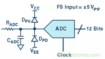 電容提供了一個(gè)簡單的低通抗混疊濾波器 (AAF),用以衰減目標(biāo)頻帶之外的信號(hào)和噪聲。AAF 的設(shè)計(jì)在很大程度上取決于系統(tǒng)的設(shè)計(jì)和應(yīng)用。最后,上拉和下拉二極管可增添輸入保護(hù)功能,可防止有可能被施加到轉(zhuǎn)換器輸入端的極端過載信號(hào)導(dǎo)致的任何故障狀況。