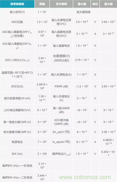雖然分析信號(hào)鏈精度的方法有許多種,但電子表格法卻最為靈活。這種方法還有助于了解如何把所有這些誤差數(shù)據(jù)在信號(hào)鏈設(shè)計(jì)中進(jìn)行細(xì)分。借助這種方法,設(shè)計(jì)人員可以快速而有效地在可以為設(shè)計(jì)考慮的合適器件之間做出權(quán)衡。