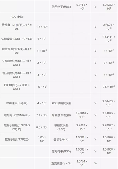 精度可以通過多種方式計(jì)算,并且可能表現(xiàn)為多種形式。根據(jù)設(shè)計(jì)人員的想法,可以深入了解并記錄所用方法,以避免形成錯(cuò)誤結(jié)果。請記住,在第一部分,我們提到,如果只是用所有這些誤差源的和方根(RSS)值,結(jié)果可能會(huì)過于悲觀。然而,統(tǒng)計(jì)容差結(jié)果可能過于樂觀了(總誤差之和除以誤差數(shù))。整個(gè)信號(hào)鏈的實(shí)際容差應(yīng)當(dāng)介于這兩種思路或方法之間。