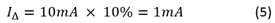 如果存在故障(如:開路,低電流導致的欠壓,高電流導致的短路或掉電),公式5表示電流的變化(IΔ):