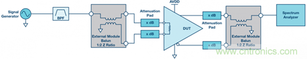 【導讀】在大多數(shù)實驗室環(huán)境中,信號發(fā)生器、頻譜分析儀等設備是單端儀器,用于測量高速差分放大器驅動器和轉換器的失真。因此,測量放大器驅動器的偶數(shù)階失真需要額外的器件,如巴倫和衰減器等,作為整體測試設置的一部分,以將單端測試儀器連接到放大器驅動器的差分輸入和輸出。