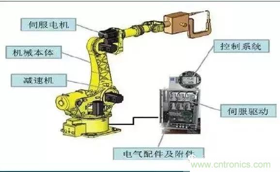 【導讀】工業機器人廣泛使用在產業制造上,汽車制造、電器、食品等,能替代反復機器式操縱工作,是靠本身動力和控制才能來實現種種功用的一種機器。它能夠承受人類指揮,也能夠按照事先編排的程序運轉。如今我們講講工業機器人基本主要構成部分。