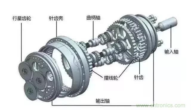 諧波減速器:用的也是少齒差嚙合,諧波里的一種關鍵齒輪是柔性的,它需要反復的高速變形,所以它比較脆弱,承載力和壽命都有限。