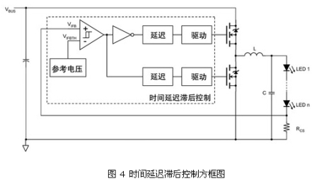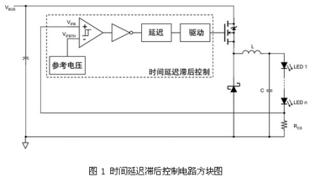 接地參考的傳感電阻簡化了電流傳感電路,但在降壓轉換器中需要高壓驅動電路。要避免使用隔離變壓器,在設計中必須選擇高邊檢測和低電壓驅動電路,或者低邊檢測和高壓驅動電路。實現(xiàn)后者的一種有效方法是,采用有時間延遲滯后控制的高壓降壓驅動電路(見圖 1)。