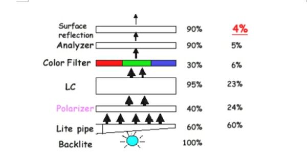 圖2:從背光源出發(fā)的光能的損失。