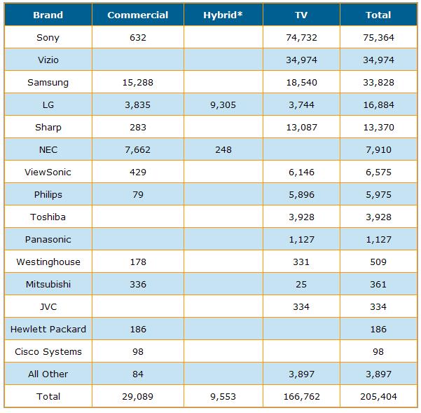 Source: DisplaySearch Monthly Large Format Commercial Displays Sell Through Report