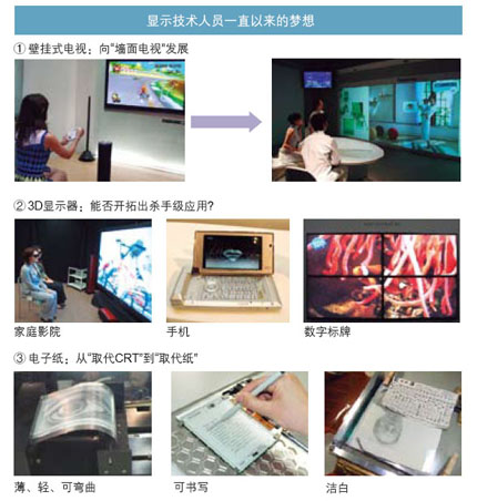 • 顯示器領域的三個夢想:壁掛式電視、3D顯示器及電子紙