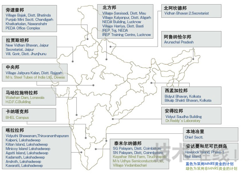 圖4:太陽能電站的分布 Ministry of New and Renewable Energy(MNRE)資金建設的電站和其他資金建設的電站