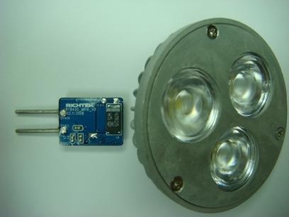 此外RT8450采用了非常小的WDFN封裝并具有4.5-40V輸入電壓范圍,這使得RT8450的驅動電路能提供很寬的驅動電壓范圍及輸入保護。RT8450的工作溫度高達125℃,可以在MR16燈具內的高溫環境中安全地工作。其500kHz的開關頻率使驅動電路可以采用小尺寸的電感和電容,另外升降壓電路架構可以將輸入濾波電容容值降低,這樣便可以將驅動電路放置在MR16燈具中,如圖2所示。