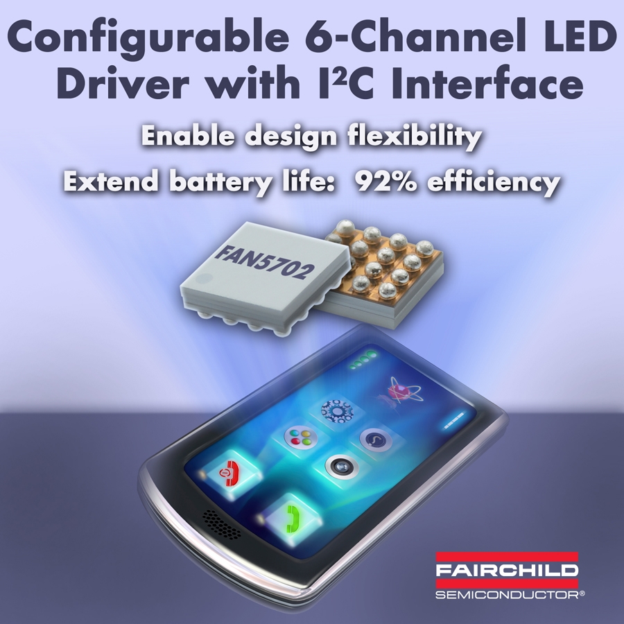 FAN5702是具有I2C 接口的可配置、180mA、6通道LED驅(qū)動(dòng)器,可提供以下優(yōu)勢(shì):