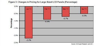 據(jù)IHS iSuppli公司的研究,4月份大尺寸液晶面板的價(jià)格降幅預(yù)計(jì)小于1%,日本地震與海嘯對其影響顯然不大。