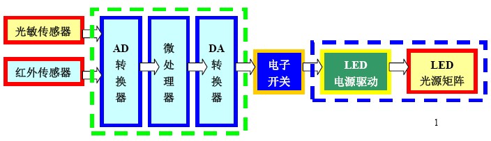 圖1:傳感器與LED燈具系統框圖