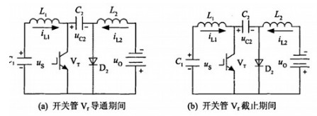 Cuk變換器在負載電流連續的情況下,其電路的穩態過程有: