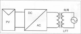 工頻隔離并網(wǎng)逆變器(如圖3)具有電氣隔離、消除電流直流分量等優(yōu)點,但體積重量大、價格高,只有94%—96%的系統(tǒng)效率。