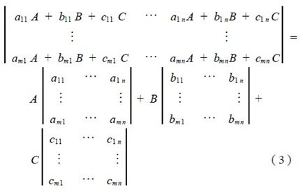 式(3) 中的各項(xiàng)分別代表紅、綠、藍(lán)單色圖像,是具有若干灰度級(jí)的,如果aij 、bij 、cij 的取值分別從0 到N ,那么,每一單色圖像的灰度級(jí)為N + 1。根據(jù)矩陣運(yùn)算法則有