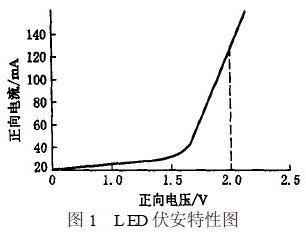 圖1 為L(zhǎng)ED 正向偏向電壓的伏安特性圖