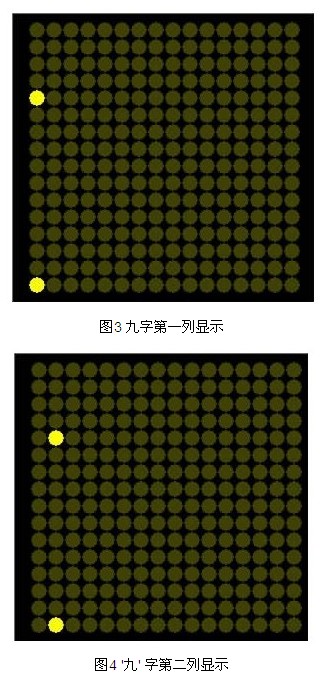 程序執行16 次后用時0.016S 左右, 由于人眼的視覺停留效應,我們是分辨不出閃爍的,循環100 次后,'' 九'' 字就可以完整顯示出來,持續時間1.6S 左右。