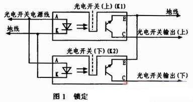 加鎖狀態(tài)下,計(jì)算機(jī)檢測(cè)光電開關(guān)輸出(上)信號(hào),若為低電平,則輸出加鎖控制信號(hào)到電機(jī),控制凸輪向上運(yùn)動(dòng),擋片(圖1中虛線所示)隨凸輪運(yùn)動(dòng)逐漸擋住光電開關(guān)(上)發(fā)光部分,K1停止工作,光電開關(guān)輸出(上)變?yōu)楦唠娖剑醇渔i到位信號(hào),控制計(jì)算機(jī)接收高電平并撤銷對(duì)電機(jī)的控制信號(hào);解鎖狀態(tài)下,計(jì)算機(jī)檢測(cè)光電開關(guān)輸出(下)信號(hào),若為低電平,則輸出解鎖控制信號(hào)到電機(jī),控制凸輪向下運(yùn)動(dòng),擋片隨凸輪運(yùn)動(dòng)逐漸擋住光電開關(guān)(下)發(fā)光部分,K2停止工作,光電開關(guān)輸出(下)變?yōu)楦唠娖剑唇怄i到位信號(hào),控制計(jì)算機(jī)接收高電平并撤銷對(duì)電機(jī)的控制信號(hào)。