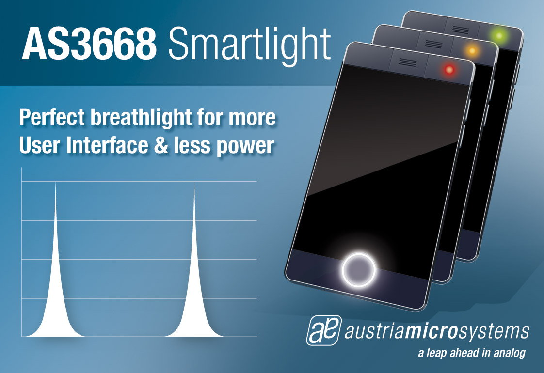 全球領(lǐng)先的高性能模擬IC設(shè)計者及制造商奧地利微電子公司(SIX股票代碼:AMS)宣布推出新款智能LED驅(qū)動芯片AS3668。新品最多可控制4個LED,為手機(jī)和平板電腦帶來精致的指示燈光效,且無需動用耗電顯著的基帶處理器。
