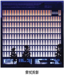 于2010年整體煥然一新的羅姆日本京都站前大樓景觀燈,整座大樓采用羅姆自產(chǎn)的LED照明等產(chǎn)品。大樓正面的墻面縱橫組合安裝了羅姆生產(chǎn)的全彩LED和可進行色溫微細調(diào)整的LED模塊,實現(xiàn)了如同透過紙窗一樣的柔和光線。該設計根據(jù)季節(jié)對色溫進行微妙的調(diào)整,表達了日本細膩的季節(jié)感,與京都街道風格融為一體。