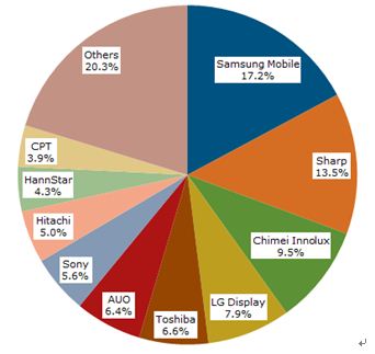 - 三星移動顯示器在2011年市占率達到17.2%