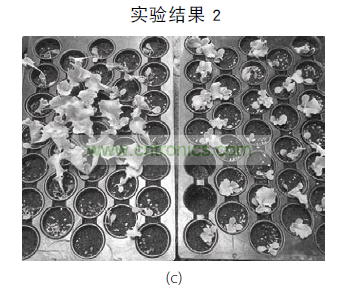 圖 (c) - 左側調色板中的實驗樣品在大功率 LED 固態(tài)照明下培育,右側調色板中的實驗樣品在普通太陽光下培育。