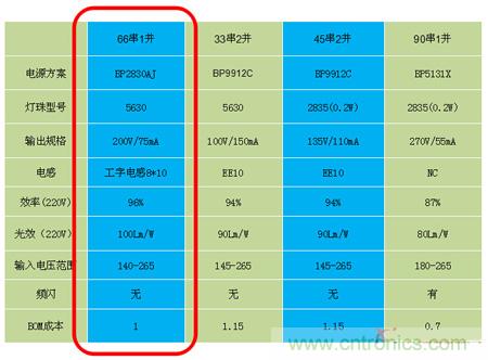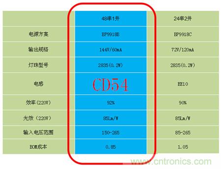 從上圖各種參數(shù)對(duì)比我們可以看出,單從成本來(lái)看,一定是線性方案最低,但同時(shí)會(huì)存在一些問(wèn)題,比如光效,效率并不是很理想,最關(guān)鍵的一點(diǎn),線性方案溫度較高,因?yàn)殇X基板溫度高而造成的硫化而存在一定的風(fēng)險(xiǎn)。所以,從整體參數(shù)對(duì)比來(lái)看,66串1并的方案是性價(jià)比最高的。同理,8W T管方案推薦的是單串1并BP9918B的方案,單片集成工藝,集成啟動(dòng)電阻,極簡(jiǎn)的外圍電路,系統(tǒng)成本極具競(jìng)爭(zhēng)力,其中值的一提的是該方案采用了CD54電感,可將BOM成本可以做到大概在0.85左右,且可以實(shí)現(xiàn)全貼片的方案,從而幫助客戶降低人工成本。