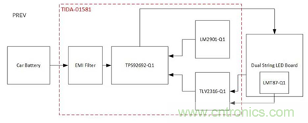 圖示1-大聯(lián)大世平推出基于TI產(chǎn)品的車輛日間行車燈LED驅(qū)動器參考設(shè)計系統(tǒng)架構(gòu)圖
