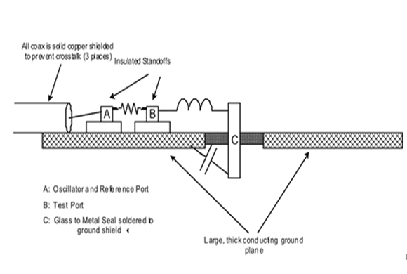 測試電感性能的最有效方法就是將被測試電感放置在最終開關電源電路上,然后對此電路的效率進行測量。但是,這種測試方法需要有最終電路,不易采用。現在,有一種相對簡單的測試方法,可以在設計開關電源前對電感的磁芯損耗進行測試(在其設定的開關頻點上)。首先,將磁芯串連放置在低損耗電容介質上(比如鍍銀云母)。然后,用一系列共振模驅動。其中介質的電容值需要與被測電感的開關頻率一致。最后采用網絡分析儀來完成整個測試過程(信號發生器加上一個射頻伏特計或者功率計也可以完成測試)。測試設備的結構如圖2所示。