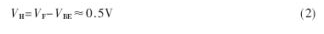 圖3中VF≈1V,施密特比較器的兩個比較點(diǎn)電壓分別為VH和VL,由式(2)和式(3)決定。