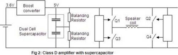 • 采用含0.55F、85mΩ的雙單元超級電容電路設計音樂手機。