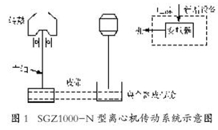我廠海綿銅處理工序中采用SGZ1000-N 型三足式全自動下部卸料離心機,進行海綿銅固液分離,該設備由主機、輔機、轉鼓(以1 200 r/min轉動)等組成。傳動系統(tǒng)情況如圖1所示。