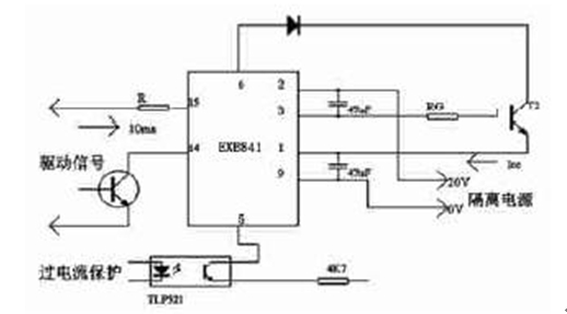 IGBT柵極驅動實用電路最好自身對IGBT 具有保護功能,并有較強的抗干擾能力。在出現短路、過流的情況下,能迅速發出過流保護信號供控制電路進行處理。