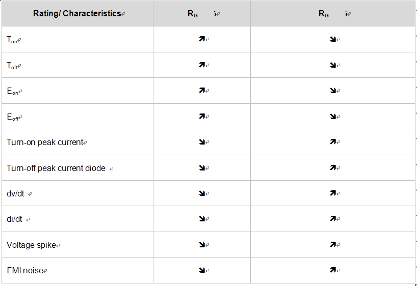 - 測試和衡量最終系統是確定柵極電阻最終最優值的唯一途徑,最優的柵極電阻值一般介于IGBT數據表中所列的值和其兩倍之間