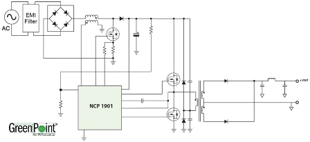 圖3:安森美半導(dǎo)體基于NCP1901組合控制器的90 W筆記本適配器參考設(shè)計。