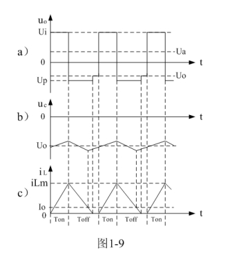 式中–Uo前的負號,表示K關斷期間電感產生電動勢的方向與K接通期間電感產生電動勢的方向正好相反。對(1-22)式進行積分得: