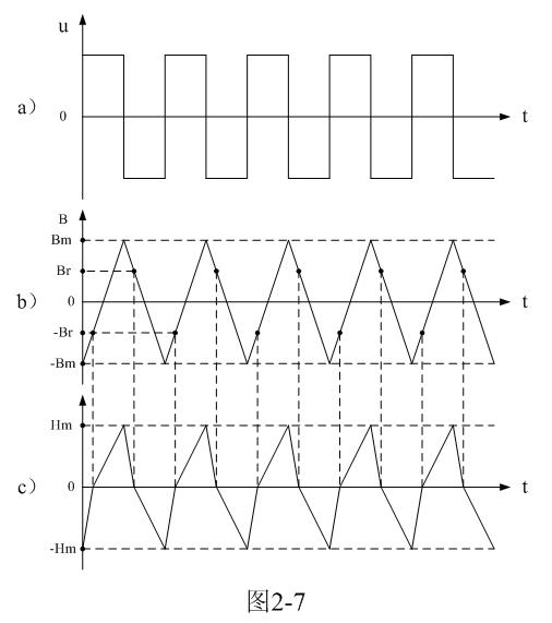 在圖2-1中,當有直流脈沖電壓輸入變壓器初級線圈a、b兩端時,在變壓器初級線圈中就有勵磁電流流過,勵磁電流會在變壓器鐵芯中產生磁通
