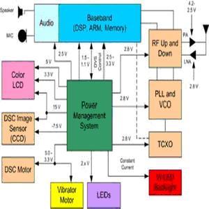 無論DSP或模擬數字轉換器等數字零件,或是電源管理系統等模擬零件,2G電話幾乎不提供任何的功能整合,系統設計人員在發展電源管理系統時,通常會以成本和體積為優先考慮,而不是轉換效率。線性穩壓器只能將輸入電壓轉換成更低的輸出電壓,因此電池電壓必須高于3.3V,此時可利用低電流或中電流的線性穩壓器進行電壓轉換,以便提供電力給至2.8V范圍內的其它電源需求。