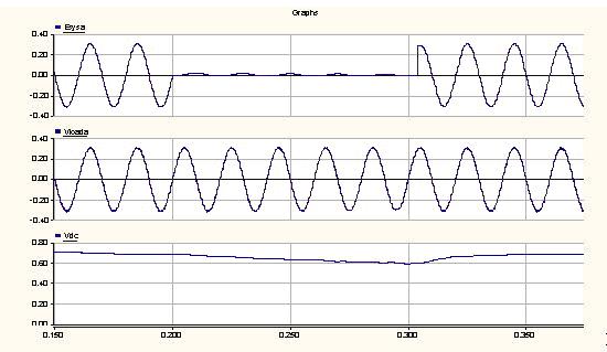 圖2.系統(tǒng)發(fā)生短時供電中斷時,ASD運行的仿真結(jié)果
