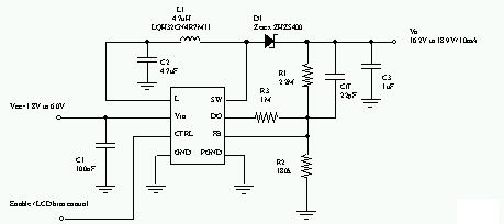 被動(dòng)矩陣OLED顯示器需要一組正電壓來做為它的電源或偏壓,這組正電壓和液晶顯示器所使用的電壓非常類似,它必須提供低功耗和高效率,解決方案的體積也要很小。隨著顯示器尺寸和分辨率不同,OLED驅(qū)動(dòng)組件需要15V到20V之間的電壓,因此電感式升壓轉(zhuǎn)換器是最理想的解決方案。[page]