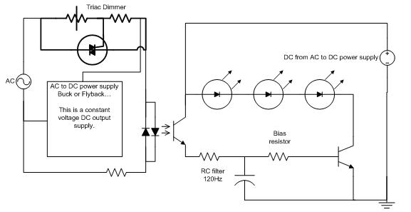 高亮度LED是傳統白熾燈的一種理想替代方案,因為前者的壽命和效率都比后者高得多,而且不同于緊湊型熒光燈泡,這些LED能夠在低溫下工作。然而,和冷陰極熒光燈(CCFL)燈泡一樣,高亮度LED也未能擺脫眾多家庭和應用中常見的三端雙向可控硅(TRIAC)調光器。本文將介紹一種具成本優勢的高亮度LED(HBLED)調光方法。