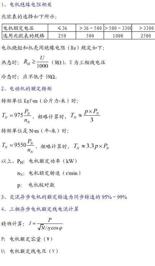 電動機相關的數據和公式